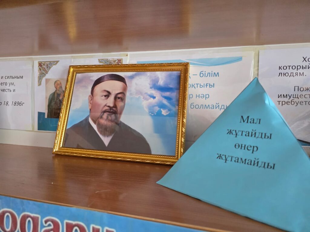 Мектеп кітапханасында әйгілі қазақ ақыны Абайдың құрметіне полк безендірілген. Мұнда қара сөзден, жазушының кітабынан және, әрине, Абайдың портретінен белгілі сөз тіркестері ұсынылған. В школьной библиотеке на самом видном месте оформлен полка в честь знаменитого казахского поэта Абая. Здесь представлены известные словосочетания из черного слова, книги писателя и, конечно же, портрет Абая.