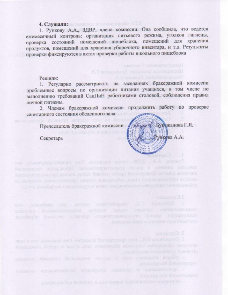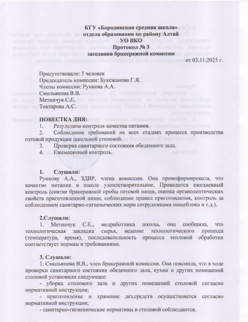 Бракераждық комиссия отырысының хаттамасы. Протокол заседания бракеражной комиссии.От admin / 03.11.2025